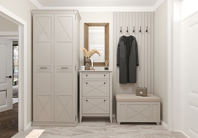 Изящная банкетка со стильными скошенными опорами дополнит не только классический интерьер, но и любую современную обстановку. Мягкий оттенок «кашемир серый» позволяет создать особую атмосферу домашнего уюта. Общий стиль подчеркивает декоративный элемент фахверк.